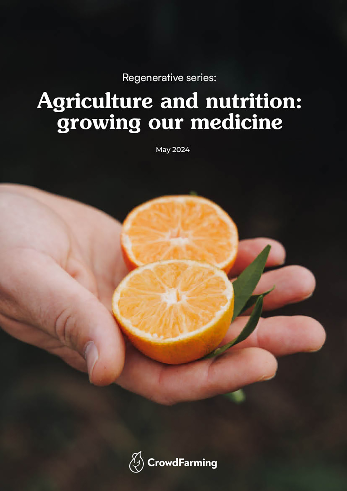 The Regeneration Series: Report about how regenerative-organic farming affects nutrition. Reviving Health from the Ground Up: Why does soil matter? Did you know that the health of our soil directly impacts the nutritional value of our food? Our latest report, “Regeneration and Nutrition: Cultivating Our Medicine,” dives deep into this critical connection and explores how regenerative-organic agriculture can be the key to a healthier future for both our planet and ourselves. The Crisis Beneath Our Feet For decades, agrochemical practices have led to the degradation of soil quality, leaving us with less nutritious food. The alarming statistics speak for themselves: up to 40% of soils worldwide are impoverished, leading to a significant drop in essential nutrients in our food by as much as 38% over the last 50 years. This degradation fuels a cycle of dependency on fertilizers and supplements, while chronic diseases linked to poor nutrition are on the rise. Regenerative-organic agriculture offers a promising way out of this “nutrition paradox” (where we produce more food but with less nutritional value) by focusing on restoring soil health through regenerative techniques like cover cropping, reduced tillage, and integrated livestock management. Studies highlighted in our report show that these practices not only improve soil organic matter by up to 31% but also have the potential to enhance the nutrient content of crops. For instance, regenerative-organic practices can increase vitamin C in oranges by 30% and antioxidants in grapes by 23%. The Bigger Picture Our research underscores the need for more comprehensive studies and incentive schemes to encourage regenerative-organic practices. The potential benefits are clear: healthier soils lead to healthier plants, which in turn lead to healthier people. By prioritizing soil health, we can break the cycle of dependency and move towards a future where our food truly becomes our medicine. Dive into the details and discover all of our insightful research on the link between regeneration and nutrition. Download the full report now and join us in cultivating a healthier world from the ground up.