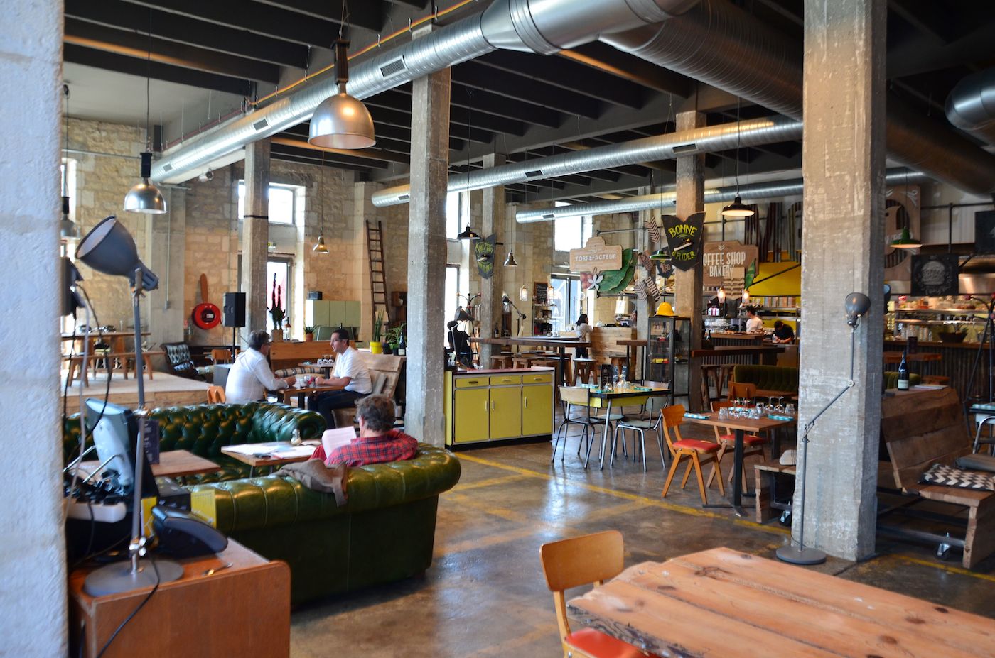 « Zéro déchet, tri au taquet », la consigne de tri est rappelée ici et là, sur les poubelles en récup’ de palettes, dans le guide d’occupation environnementale, sésame d’entrée pour tout nouvel arrivant des 140 entreprises qui travaillent ici dans les Magasins généraux rénovés. Les déchets organiques du restaurant biologique ? Ils servent à alimenter le compost qui lui-même nourrit les terres des la ZAUE, la zone d’agriculture urbaine expérimentale, espace où l’on teste la permaculture, l’aquaponie, la culture de champignons sur marc de café… « Darwin écosystèmes ne s’est pas mis à l’écologie, rappelle Jean-Marc. C’est sa raison d’être. »