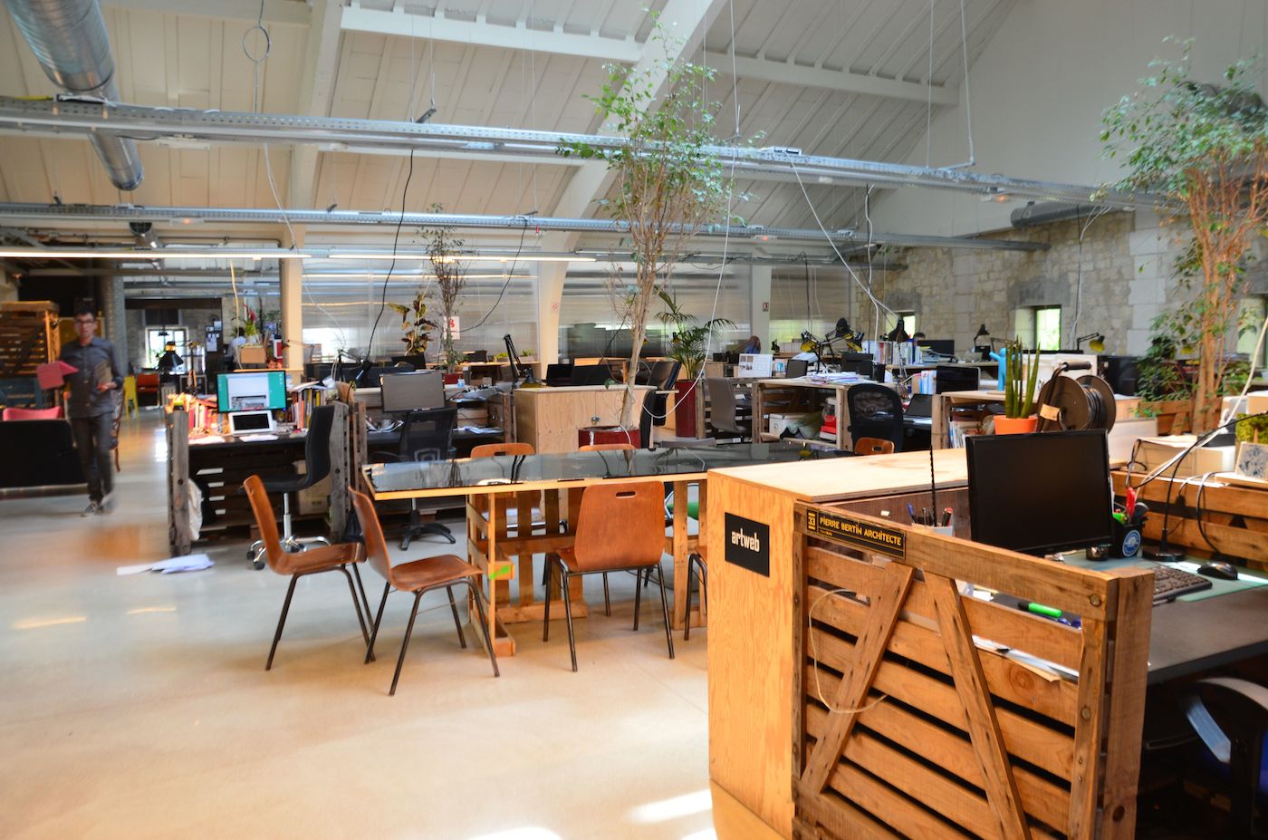 « On n’est pas du tout adeptes de Rifkin, prévient Jean-Marc. La 3e révolution industrielle, on n’y croit pas. Ici on valorise aussi le low tech. » Dans la Manufacture, les fablabs réalisent tout le mobilier du domaine en vieilles palettes de bois, cloisons mobiles, ancienne charpente alors que la Ressourcerie récupère et valorise des biens et des matériaux en fin de vie.