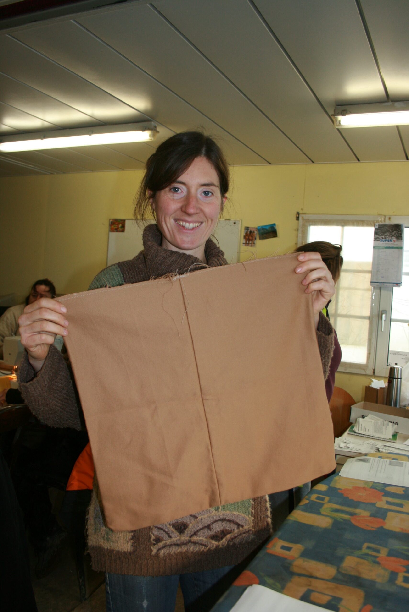 « On apprivoise les machines », sourit Marcelle, salariée de l’atelier depuis neuf mois. Certaines n’ont jamais fait de couture, c’est donc une découverte pour elles. Sabine profite de l’occasion pour « apprendre à coudre, enfin, si j’arrive à entrer le fil dans l’aiguille ! » On entend les rires entre les tictictic des machines, tandis que Cathie, la femme de Jean-Paul Lott, distille ses conseils aux maraîchères en pleine action, tout en remettant le droit fil en place ou en remplaçant une bobine vide. « Cathie lance l’atelier qui va se dérouler sur tout l’hiver, précise Marie Windenberger, l’objectif est de faire deux-cents sacs pendant cette période qui demande moins de travail dans les champs. On est plus disponible, c’est intéressant de faire ces travaux pendant ce temps ».