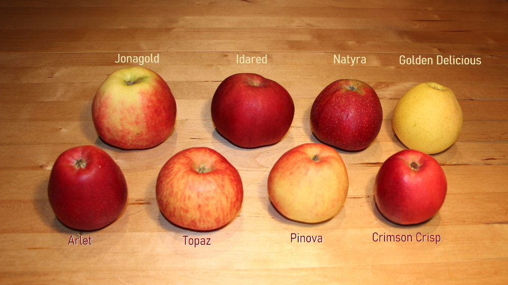 Ces variétés résistantes, qui conviennent particulièrement à l’agriculture biologique, comprennent Natyra et Choupette. La Natyra, de couleur jaune-rouge, a été spécialement sélectionnée pour l’agriculture biologique et présente un goût à la fois doux et acidulé. La variété française Choupette Bio est une variété biologique très appréciée en France en raison de sa résistance aux maladies. Comme de nombreuses variétés modernes, elle est également très sucrée et possède une agréable saveur acidulée.