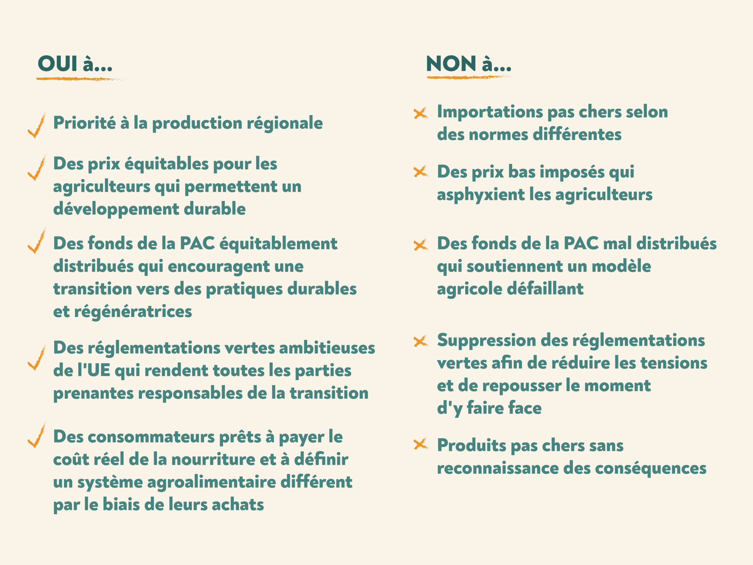 Bien que certaines préoccupations, telles que le projet de suppression progressive des avantages fiscaux accordés au diesel agricole pour équilibrer le budget en Allemagne ou l’obligation de réduire les émissions d’azote aux Pays-Bas, soient propres à chaque pays, les manifestations actuelles voient les agriculteurs de tous bords – petits producteurs et producteurs biologiques, mais aussi grands producteurs commerciaux et conventionnels – unis par leur impuissance face à des chaînes d’approvisionnement déloyales.