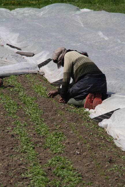 Côté financement, les contrats de travail de personnes en insertion (26h / semaine) sont financés en partie par l’Etat et le Conseil Général. L’agriculture biologique nécessitant beaucoup de main d’œuvre, ça tombe plutôt bien. En contrepartie, l’ACI doit assumer les coûts de la structure (encadrants techniques, encadrants sociaux, frais de fonctionnement) par la vente des légumes, comme toute structure commerciale qui se respecte.