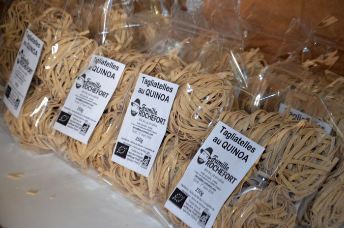 Top chrono. Qui veut se coller au conditionnement des tagliatelles au quinoa maison ? tente Ségo vers 11h15 pour nous divertir. Pas grand monde. « Faut pas en faire trop, ça prend la tête », confie Albane qui s’est déjà tapé une séance la veille. L’exercice demande une véritable minutie. Il faut ranger les pâtes par 5 dans un sachet transparent sans les abîmer, peser pour vérifier qu’on atteint bien les 250 grammes et thermosceller. « J’ai fait combien ?» demande Ségo à la fin de son carton. 16 minutes pour 12 paquets. « C’est trop, faut qu’on s’améliore. »