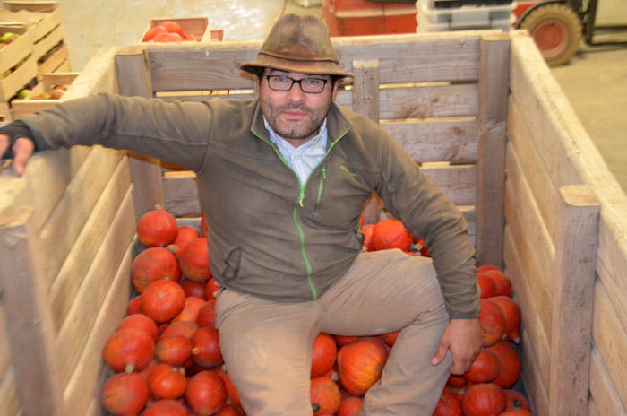 Mission conservation. Dans le hangar, de grandes étagères accueillent plein de produits de la maison. On y trouve les pâtes fabriquées avec le petit épeautre de la famille Rochefort, de grands sacs de farine moulue à la meule de pierre dans un coin. Plus loin, les paddocks jouent les piscines à balles version curcubitacées. « Ici se trouve toute notre récolte de potimarrons, explique Yves de Rochefort. L’objectif est de les conserver le plus longtemps possible. » Il faut donc que les courges cueillies juste au moment où leur queue commençait à sécher, ne perdent rien de leur panache. Pas fastoche. Yves vient de récupérer un énorme ventilo qu’il compte activer pour aérer les bêtes et éviter qu’un jour la moisissure ne les gagne. « On verra en février si mon invention est à breveter ». Ailleurs, les patates (qui verdissent à la lumière) attendent leur heure à l’abri sous une grande bâche noire. Plutôt proche pour certaines d’entre elles qui monteront le soir-même dans le camion.